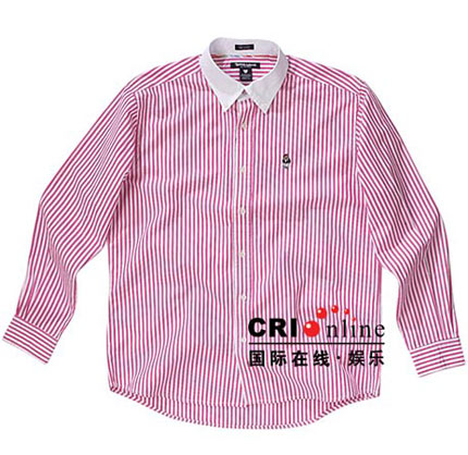 粉白相间的竖条纹衬衫,圆摆的设计与亮丽的颜色打破的衬衫的中规中矩,搭配一条破洞牛仔裤颇有一丝中性的帅气。