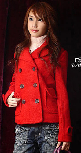 红色双排扣呢子外套是今年很时尚的装扮,双排扣的设计已经不仅限于它的功能性,更多的起到了装饰作用。