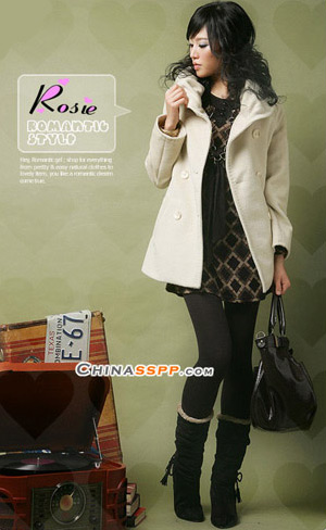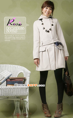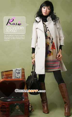 借鉴了风衣款式变化的大衣同样高贵典雅,与黑色长袜搭配更加具有时尚感觉