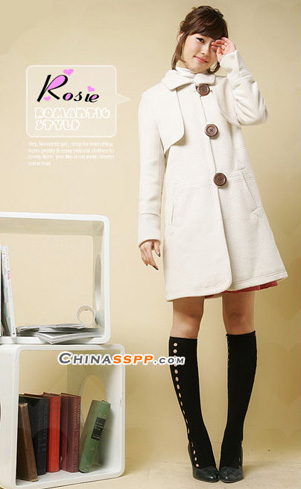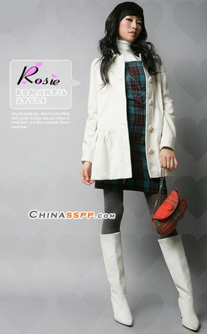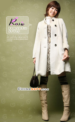 分段式白色大衣有着非常明显的瘦身效果,很容易掩饰不够完美的下半身和臀部