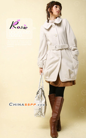 高腰大衣有可爱感觉,米色系平易近人,打造富有亲和力的美少女