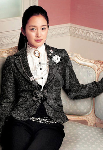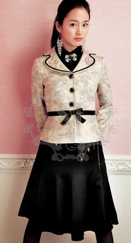 黑色收身西服搭配白色小立领衬衫,演绎出韩式的优雅。