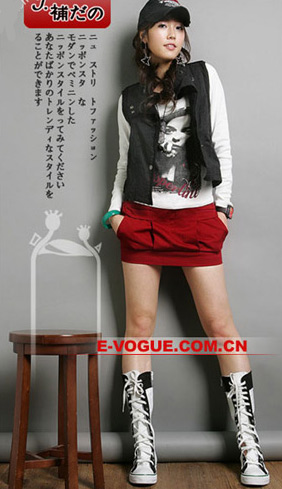 橘色丝绸衬衣增添独特的韵味,超短百褶裙打造性感形象。