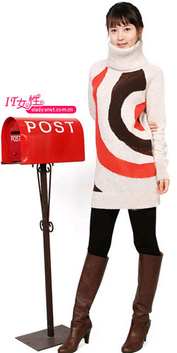 几何形长毛衣配长款针织衫,同样的温柔加倍的温暖。