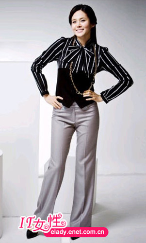 时尚OL们的新宠,黑白条纹衬衣与灰色西裤冷静而富有时尚魅力