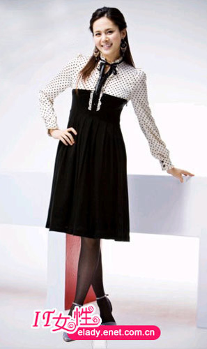 高腰裙突出丰满上围,黑色长袜更是时尚的风向标