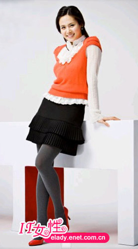 倍加可爱的超短裙与橘色上衣搭配,甜美可爱得令人窒息