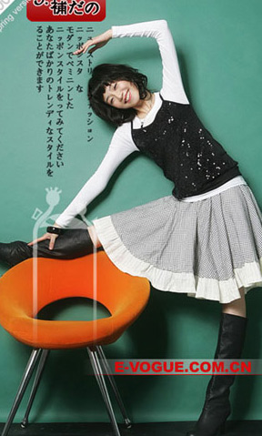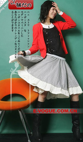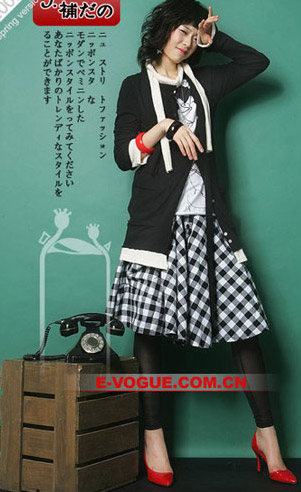 格纹裙实在是时尚之选,黑白搭配的单调感觉却因为红色而跳跃起来