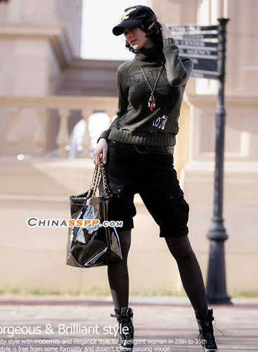深色调短毛衣与5分裤,用闪亮腰带来提升醒目度 H型内搭外套一件长针织衫很容易模仿