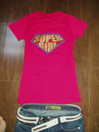 Super girl,超级女生!不做下一个谁,做下一个我自己!简洁的T-SHIRT,粉色配以对比色的logo,俏皮的不是衣服,而是选择衣服的想法。