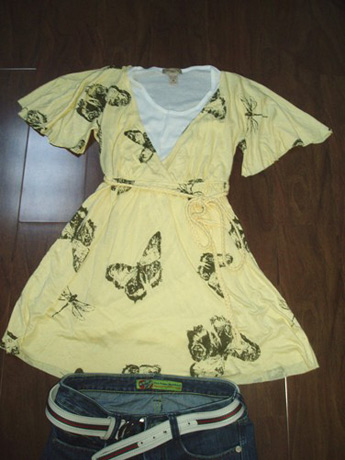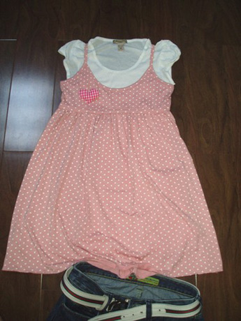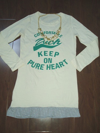 心型图案上衣、独特印花的上衣、短小梦幻T-shirt里长外短搭配。