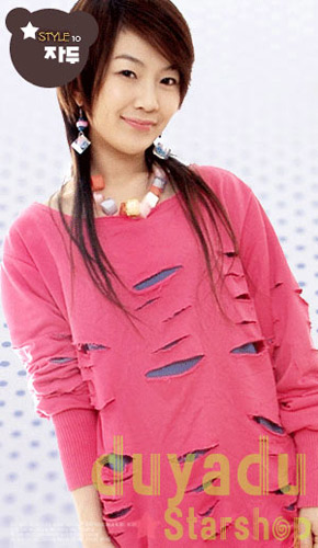 这对于那些个性十足充满叛逆的女孩来说,一定是一个很好的选择。破烂式的上衣和甜美的项链对比,显得超有个性魅力。