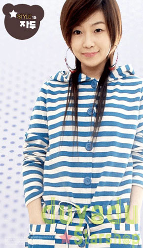 海军蓝的条纹给人很清爽的感觉。长衣的造型强化了这种清爽的感觉。中间的蝴蝶结和口袋有不失可爱。