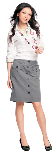 千鸟纹裙可与任何款式的上衣搭配。黑白千鸟纹裙是经典款式。