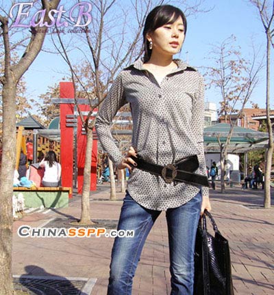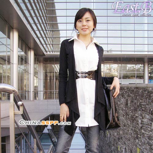小西服配衬衫职业女性的利落款式,衬衫胸部的细微褶皱是引人入胜的关键。