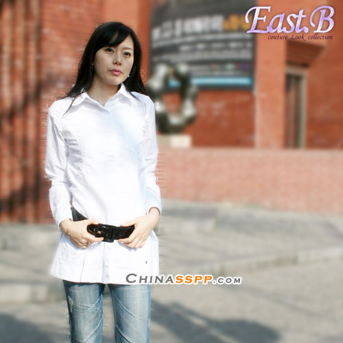 纯白色的长款衬衫炫耀美丽的青春,为你邂逅浪漫的校园恋情。