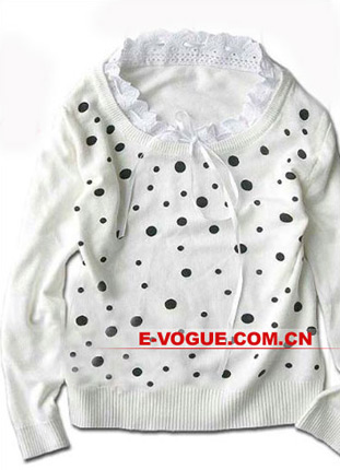 黑点的装饰与服装款式的可爱造型很搭配,蕾丝的领子实在是太可爱。
