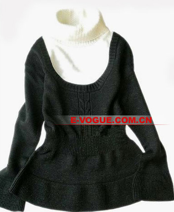 喇叭式的下摆显得十分的可爱,黑白的搭配简洁到位,可以搭配深色项链效果会更好。