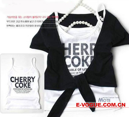 黑白的搭配,白色印花吊带穿着舒适,而黑色的小外套式样显得别致和特色,下摆可以系带比较个性。