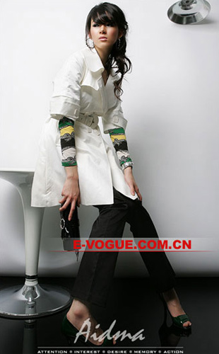 里面是丰富的色彩印花衫,外面是纯白的中袖外衣,一亮一淡的对比,将印花和外衣的主次分的十分清楚。