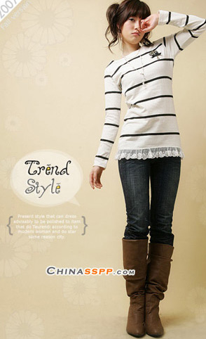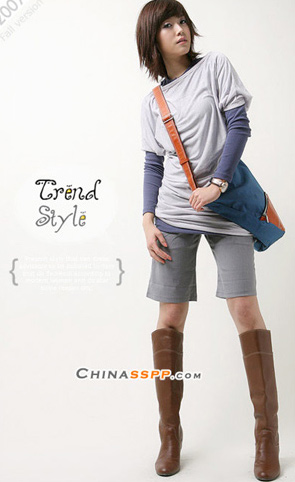 清新明快的色彩组合,自然让人过目不忘,5分裤加长靴做帅气学生代表。