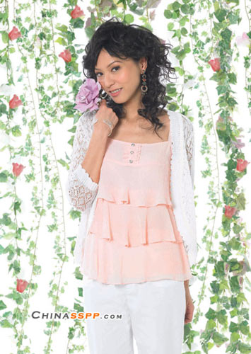 薄纱上衣凸现女性柔美的一面,花边装饰更显温柔