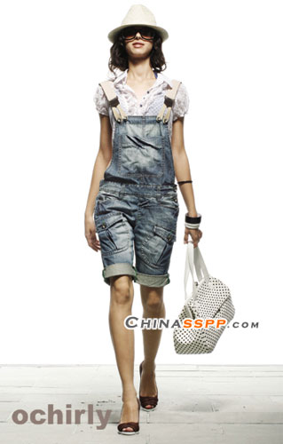 本季连身式牛仔裤的设计,设计师更多注重了细节设计,不同材质颜色的背带取代了原有同色同面料的设计风格,让原本单一的牛仔显得亮丽而不花哨,裤腿上两个大贴袋的褶皱设计,也让穿着的你更显俏皮。