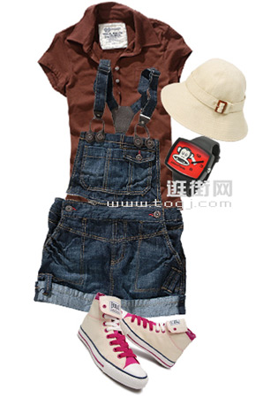 复古的背带裙流行卷边,搭配渔夫帽及休闲鞋,外出游玩就选它。