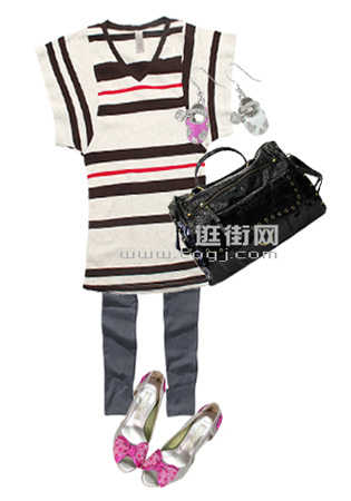 用时下最时尚的单品袜裤搭配条纹长衫轻松穿出S型,可爱的鞋子一穿就出彩。