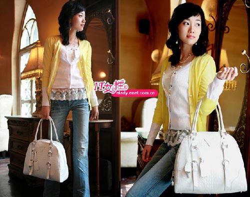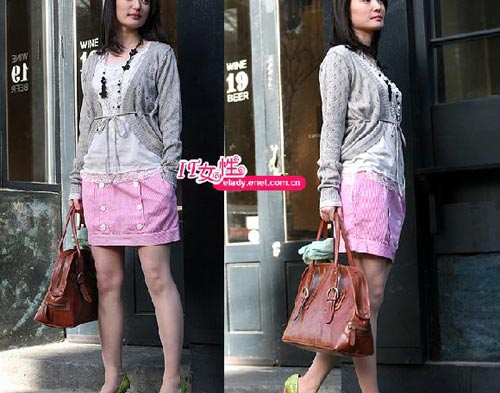 配上从去年开始流行的蝴蝶结对襟羊毛衫,进行一次层次搭配,就能将女性的特有魅力充分的展示在别人的面前。是不是有人反映这样搭配会看起来太浪漫而不够稳重啊?那就搭配上可爱的短裙吧!前端设有白色的扣子,看起来非常清爽哦!