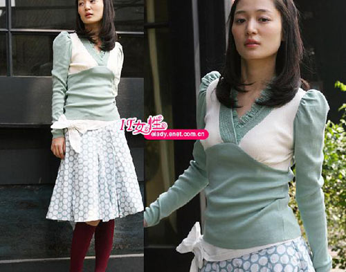 肩部非常自然收缩,颈部线条也非常优美的淑女羊毛衫,配上可爱的水珠花纹的短裙,一套看起来既淑女又可爱的服饰就这样搭配成功了!看起来既不沉重,又不乏淑女的魅力,非常聪慧的服饰,相信你一定能够成为聚会的焦点人物哦!