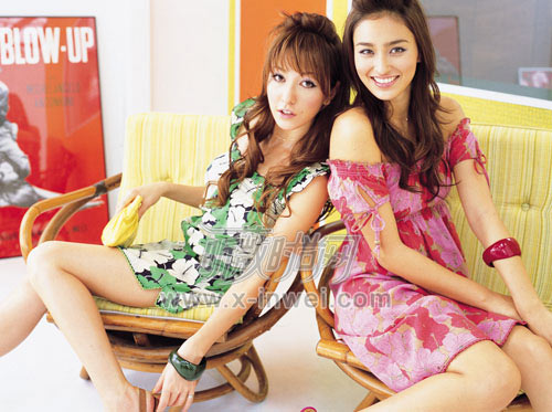 左:无袖印花连衣裙,甜美的细节设计很丰富。右:袖子上的蝴蝶结装饰和绚烂的印花一样,散发着无限甜美!