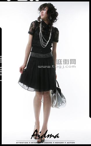 黑色的蕾丝与雪纺搭配,甜美并性感着。