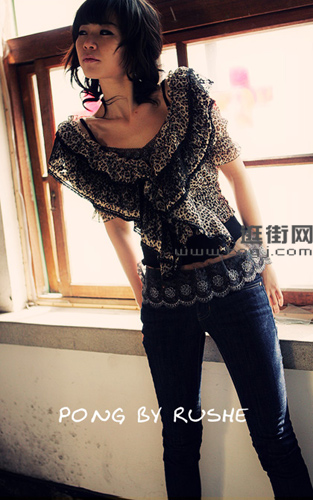 简单硬朗的牛仔裤中和了豹纹上衣的性感指数