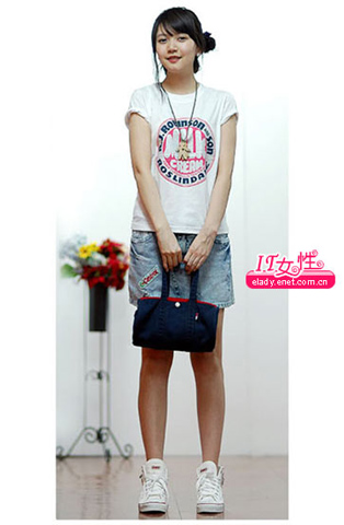 T恤+仔裙+运动鞋,每一个青春女孩都会选择这样的打扮,加一款个性饰品就十分抢眼。