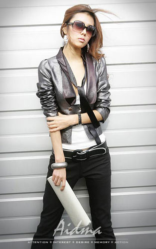 帅气夹克制造焦点:泛着光泽的材质,利落的修身剪裁,流行感十足的黑色领带,看似松垮的装扮,越发显得性感,不吸引众人目光都难!