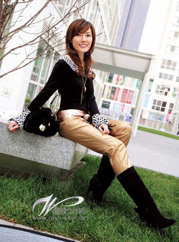 闪亮裤装装扮令你与众不同,金色长裤+黑色高筒靴时尚新编辑参加聚会的日常休闲装扮。