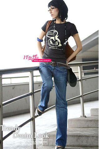 运动衫配仔裤平淡中有惊喜,红色的漆皮腰带、豹纹大包都能为你增添性感成分。