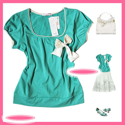 可爱的泡泡袖体恤配上七分裤在踩上一双舒适的平底鞋,可爱淑女打造成功