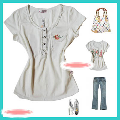 灰色的体恤比较有女人味,但银色的平底鞋加入了运动感,我们就来做个动感淑女吧