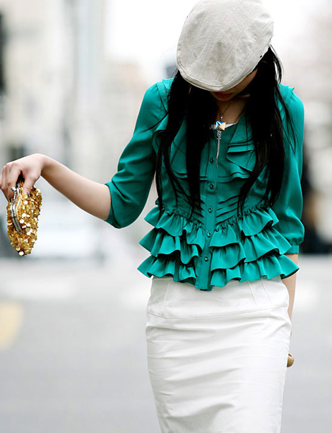 荷叶边属于今年的流行元素,把如此甜美的衬衫穿到办公室,连你周围的同事也会心情大好。