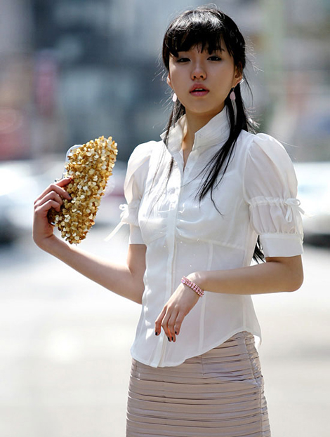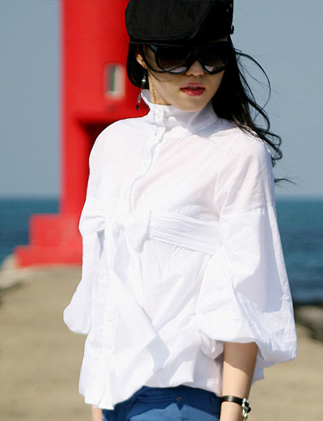 有了一个小泡泡袖的白色衬衫,显示了你对流行的把握度,而下摆处的蝴蝶结更是让你女人味十足!