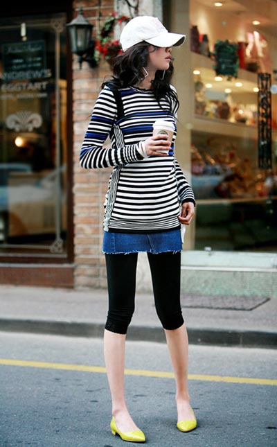 小腿袜搭配牛仔裙也是相当吸引人眼球的