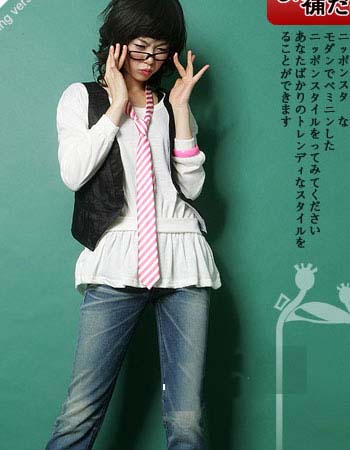 黑色马甲搭配彩条领带显得十分另类