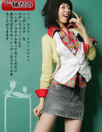 白色马甲搭配彩色格子衬衫,显得俏皮可爱