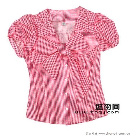 红白相间的碎格子衬上胸前的蝴蝶结显得更加甜美诱人。