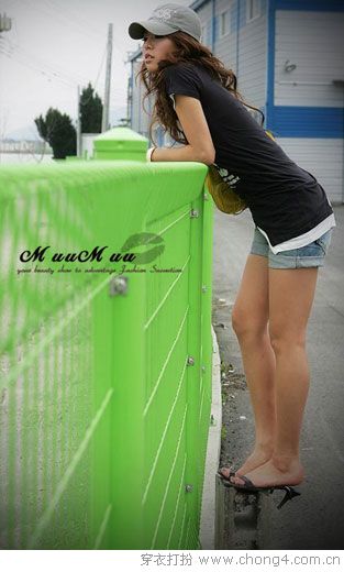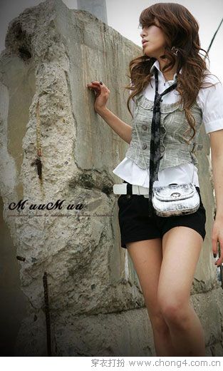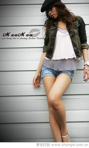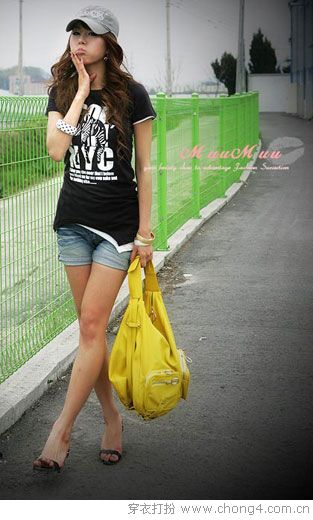 不规则的下摆+鸭舌帽+超短裤打造坏女孩形象。