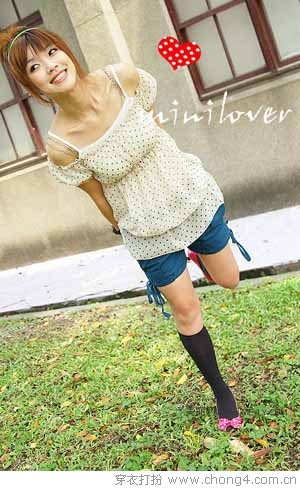 好搭配的圆点纱纱衫+兰色收腿短裤