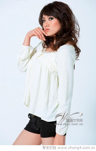 恰好露出锁骨的V字领性感又不过火,衣领下的褶皱线可以在视觉上丰满胸部。