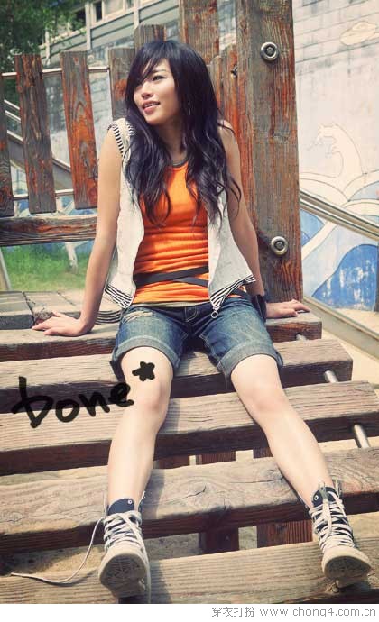 甜美五分牛仔裤映衬绝妙鲜橙色